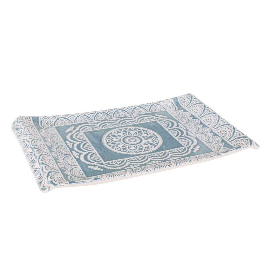 Piatto rettangolare decoro Madras colore azzurro avioin stoneware decoro sotto smalto garantisce la durata nel tempo, adatti all’utilizzo in forno, microonde e lavastoviglie.