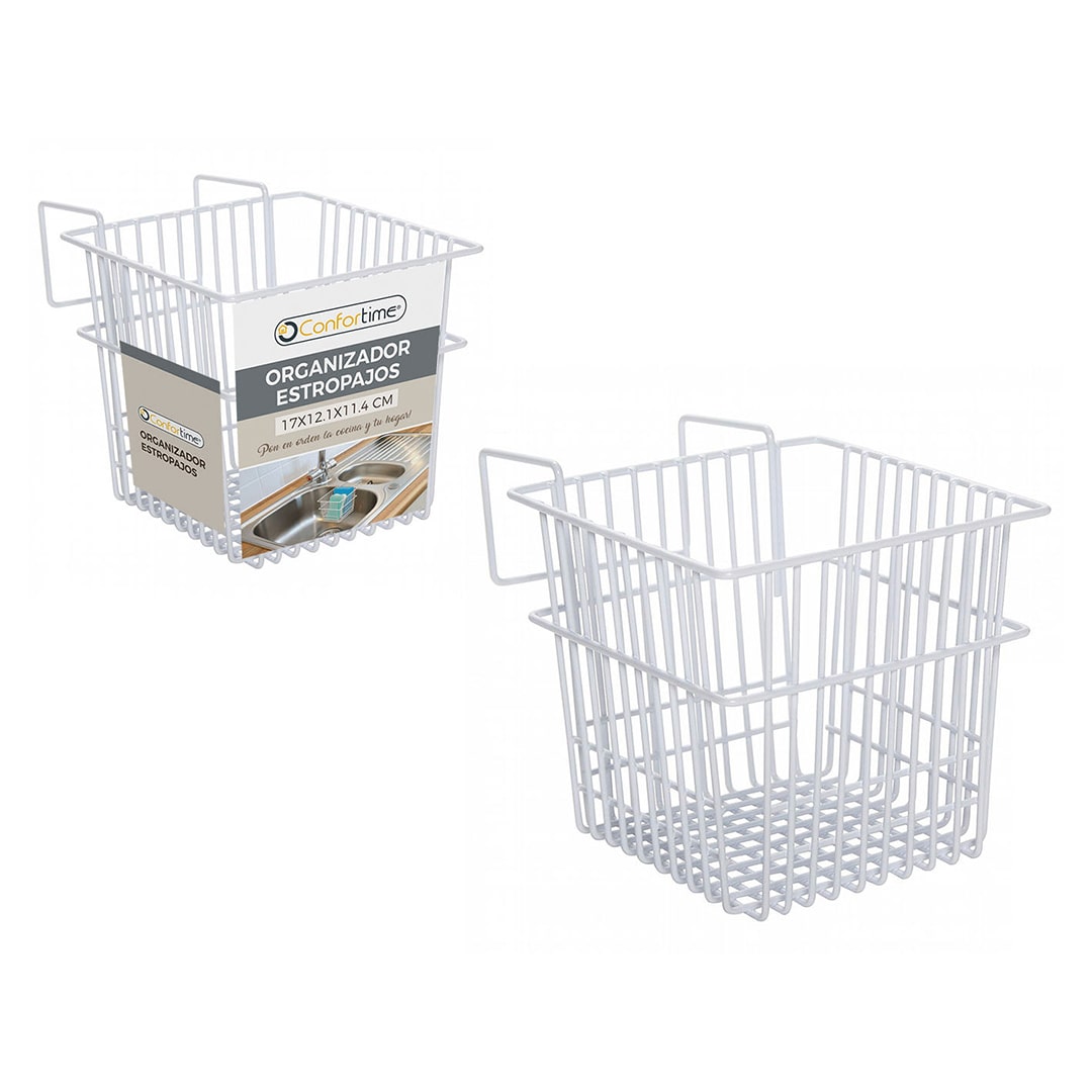 Organizzatore per cucina e bagno realizzato con un filo di metallo plastificato adatto all’utilizzo con l’acqua.
