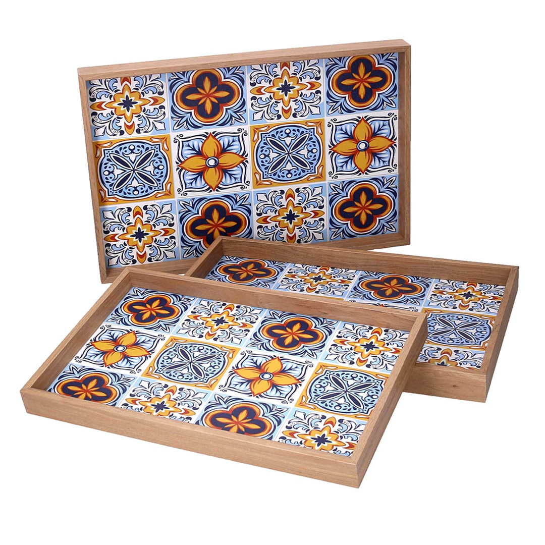 Vassoio in legno e bordo naturale, il colore che risalta è l’azzurro.