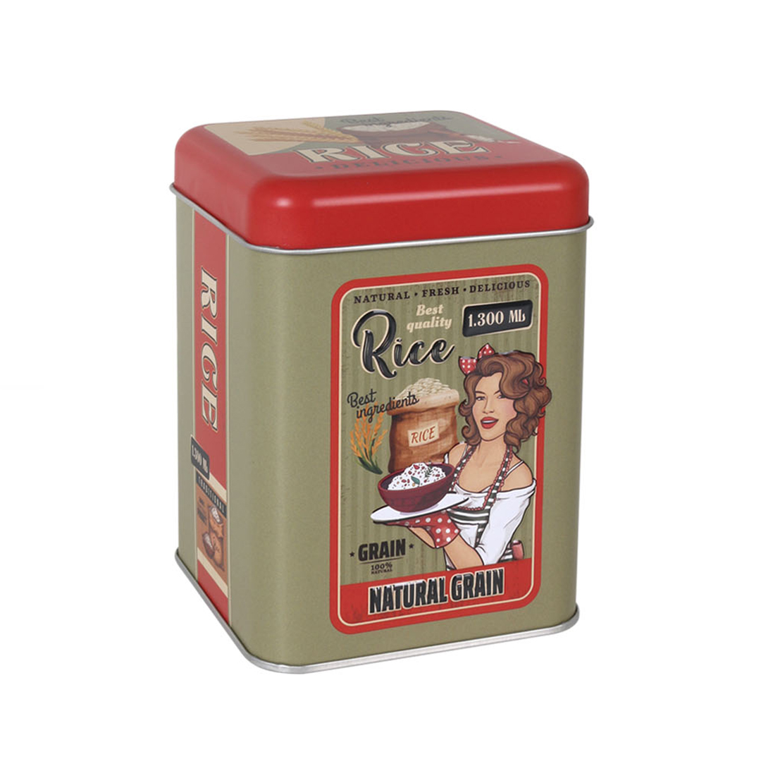 Scatola rettangolare in metallo a fantasia vintage, ti consente di depositare al suo interno ingredienti, biscotti oppure accessori per mantenere un ambiente ordinato e un design creativo e allegro.