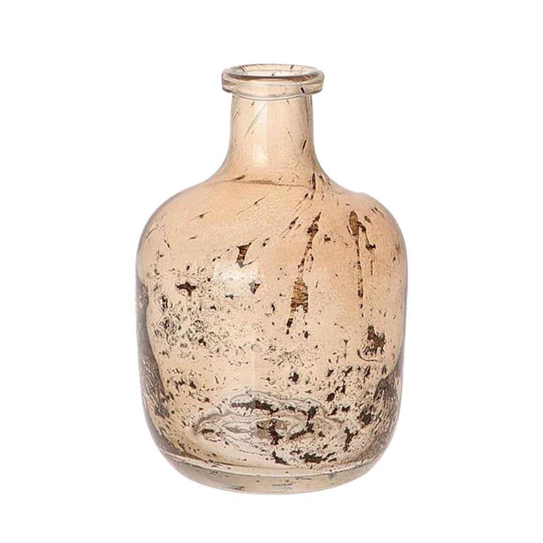 Vaso in vetro rialzato con lavorazione a fantasia su tutta la superficie dal design moderno che permette di avere un arredamento interno semplice e d’impatto.