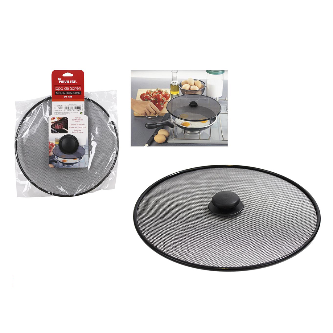 Coperchio paraschizzi realizzato con filo metallico adatto per l’utilizzo sul piano cottura.