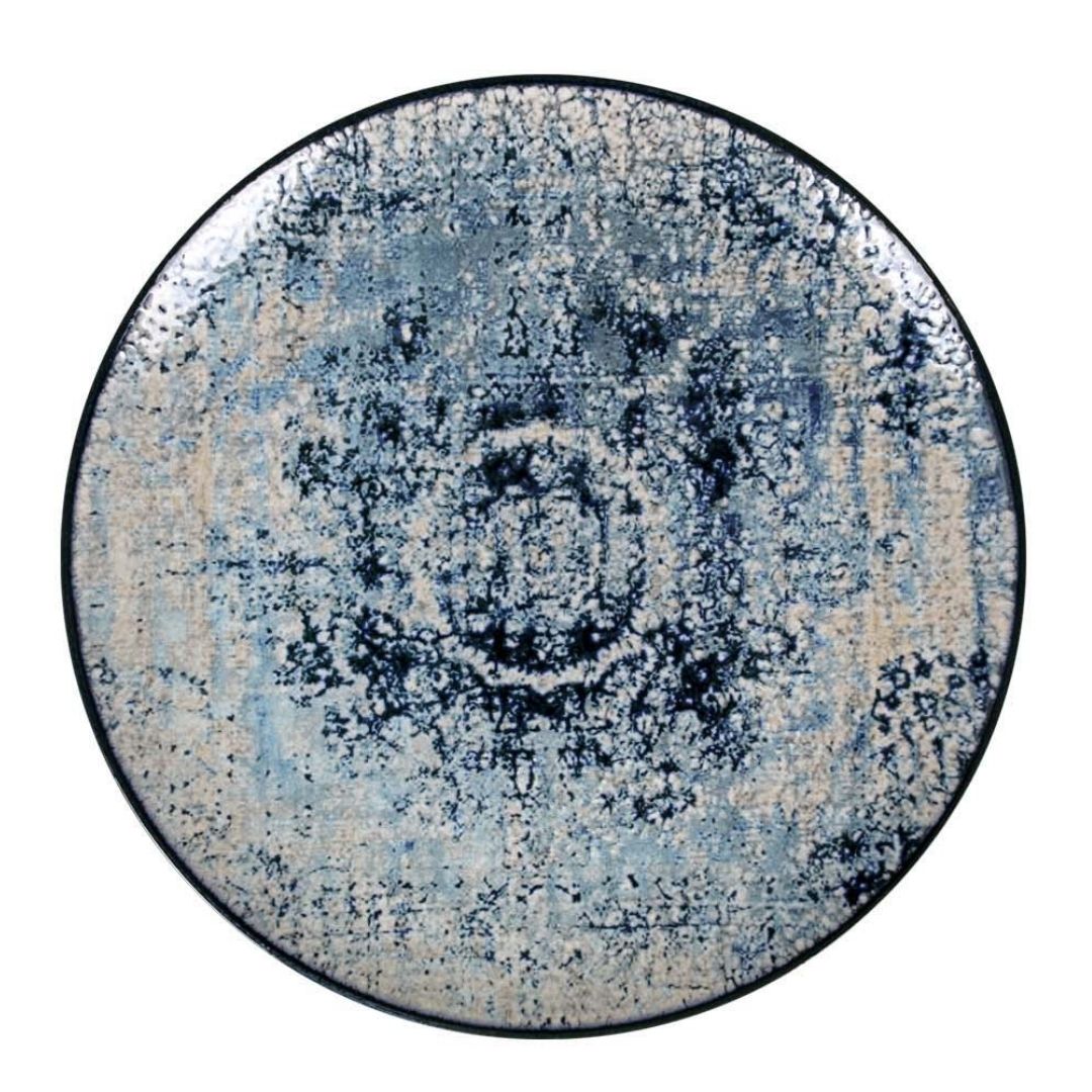 Piatto piano 26 cm decoro Elettra in stoneware, questa tipologia di fantasia in sotto smalto garantisce la durata nel tempo, utilizzabile in forno, microonde e lavastoviglie.