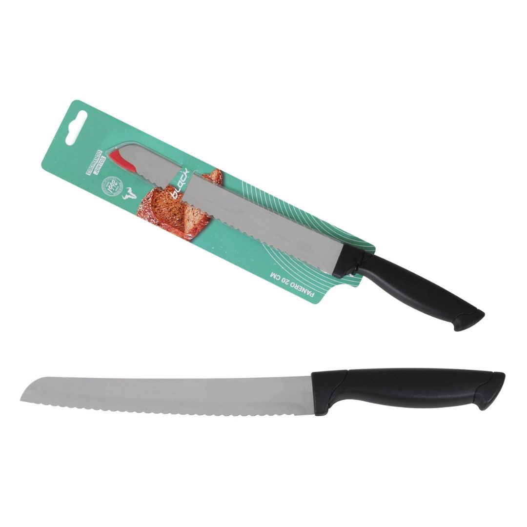 Coltello pane in acciaio dal design classico, con manico dotato di protezione anteriore e posteriore.