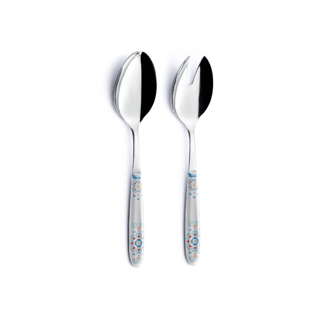 Coppia insalata vero trinacria bianco in acciaio inox 18/10 con manico in PBT sublimato 100%.