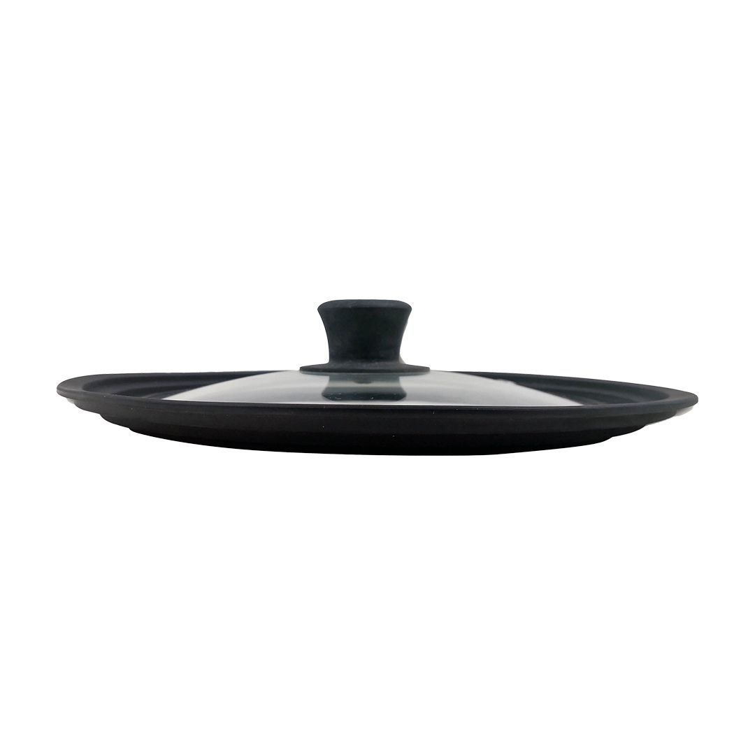 Coperchio in vetro temperato con pomolo e bordo in silicone, grazie al bordo in silicone con 3 scalini permette di essere adattabile e utilizzato sulle pentole e padelle, resistente anche in forno max 180° e lavastoviglie.