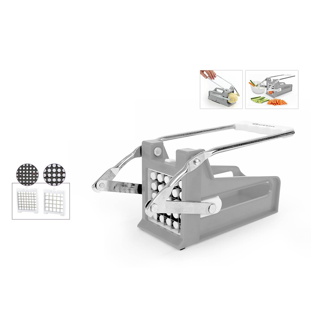 Tagliapatate manuale con 2 forme di taglio in dotazione, ovvero la lama in acciaio ti consente di trasformare le verdure in delle striscioline squadrate di dimensioni piccole e grandi.
